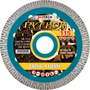 Disc diamantat pentru gresie, faianta, Python, 115x10x1,2, PT115, Diatech